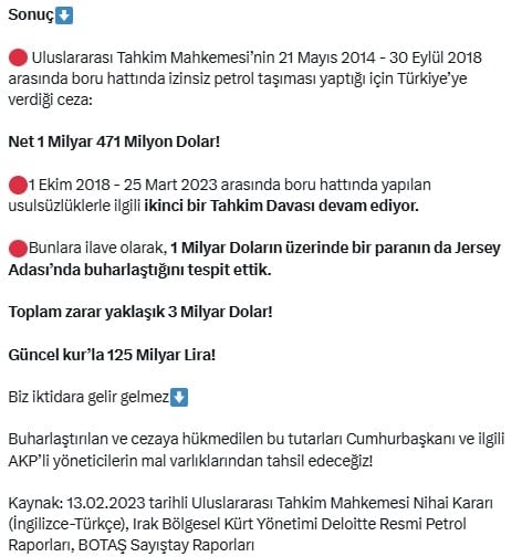 Kaynak: 13.02.2023 tarihli Uluslararası Tahkim Mahkemesi Nihai Kararı (İngilizce-Türkçe), Irak Bölgesel Kürt Yönetimi Deloitte Resmi Petrol Raporları, BOTAŞ Sayıştay Raporları”