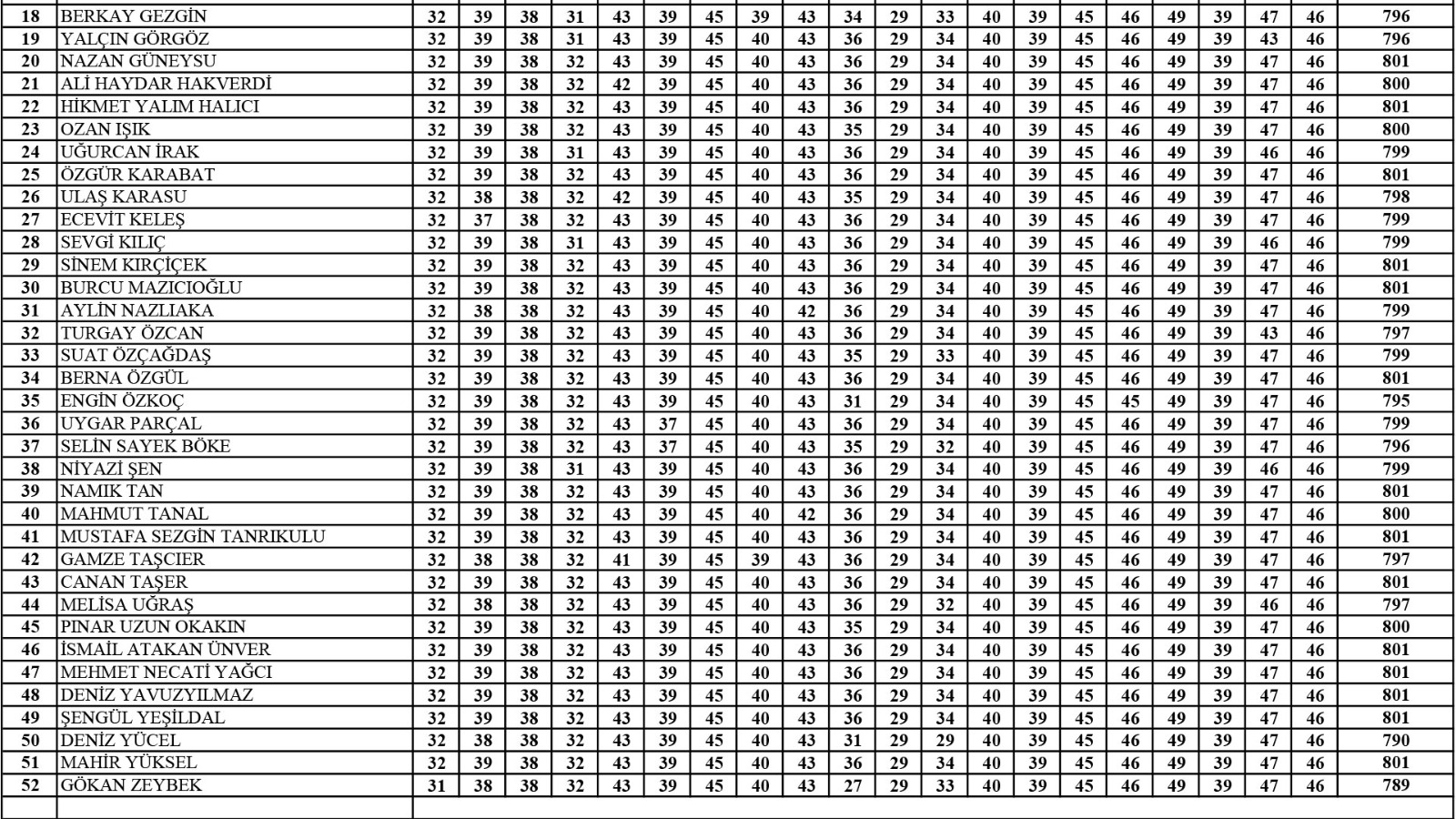 Yüksek Disiplin Kurulu asıl listesi bu şekilde: