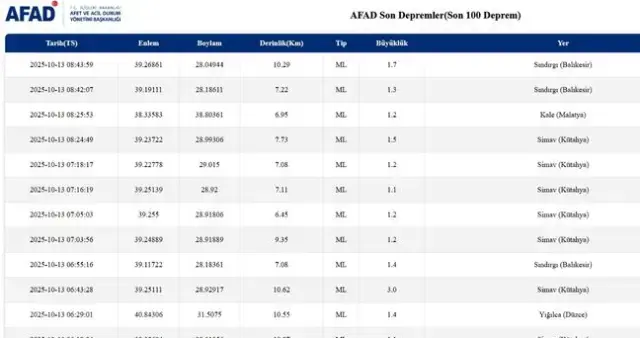 13 EKİM 2025 DEPREM OLDU MU?